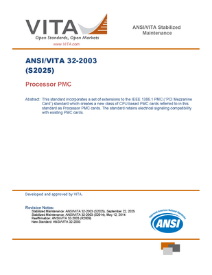 Processor PMC: This standard incorporates a set of extensions to the IEEE 1386.1 PMC (PCI Mezzanine Card) standard which creates a new class of CPU-based PMC cards referred to in this standard as Processor PMC cards - standard retains electrical signaling compatibility with existing PMC cards.